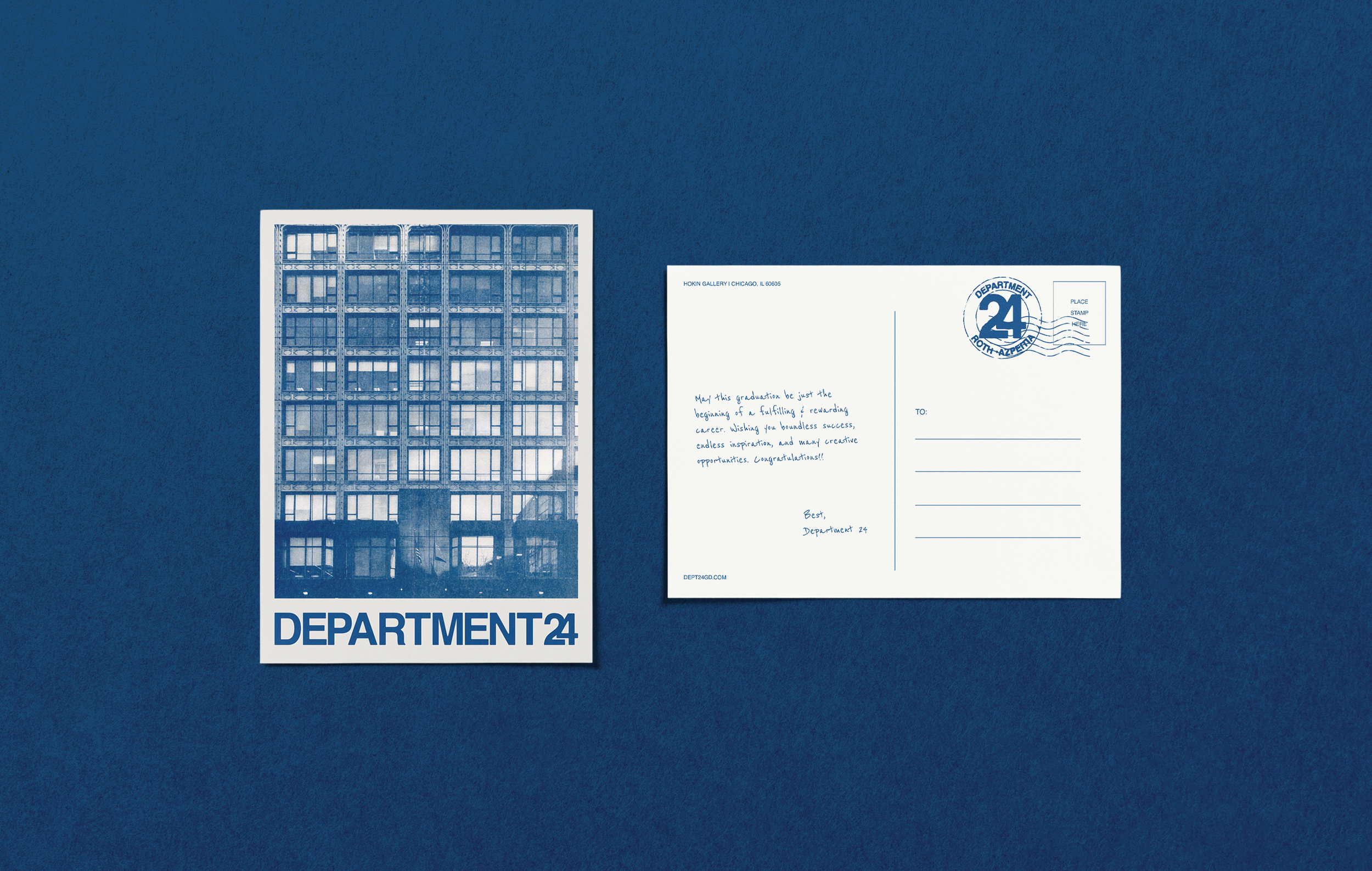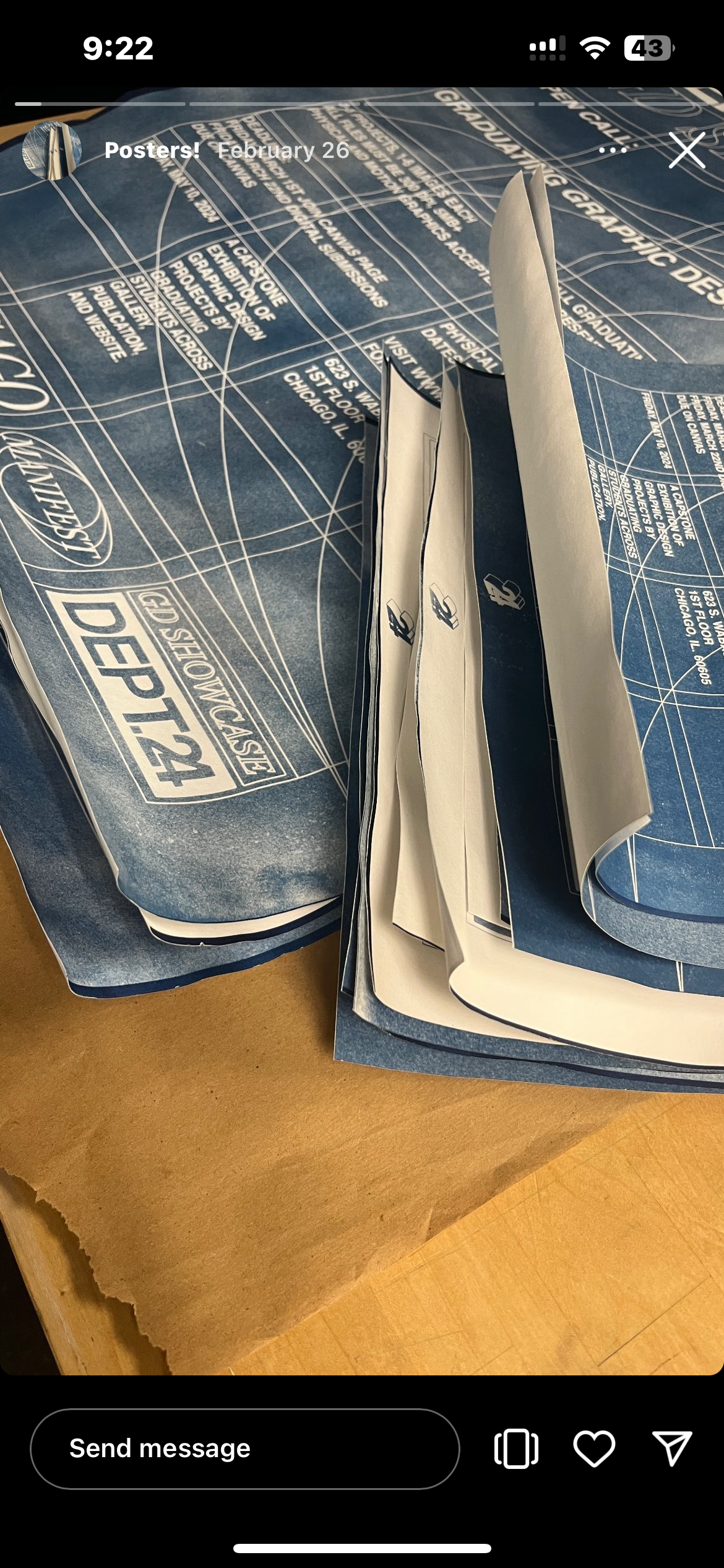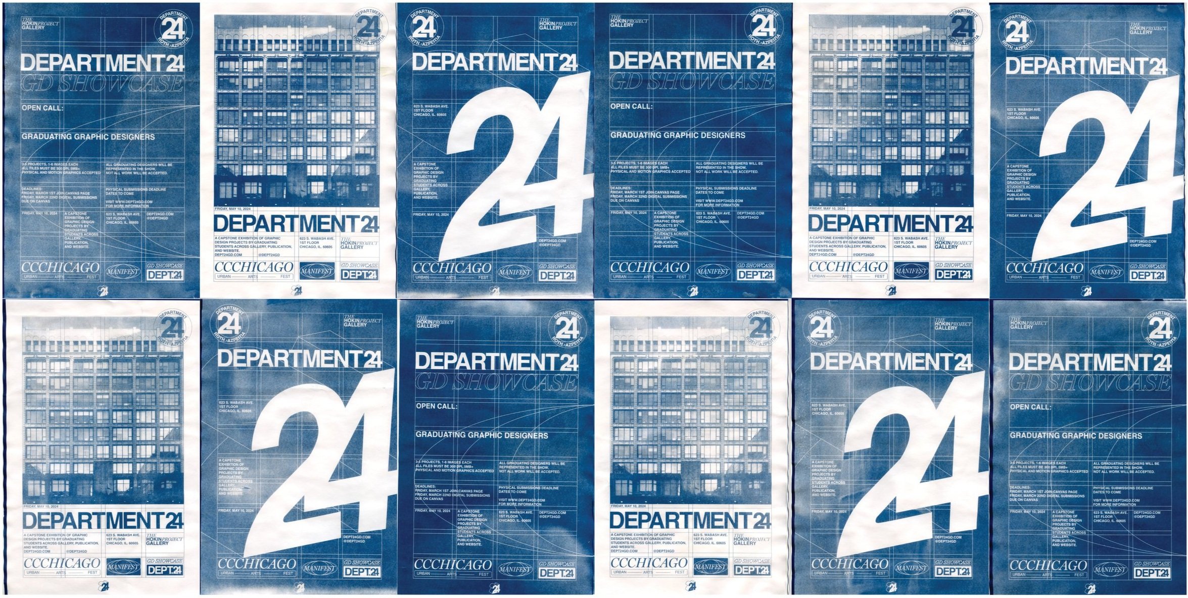 Art Direction for Department 24 Graphic Design Showcase for Manifest Urban Arts Festival. This branding project encompasses a exhibition that will be held in the Hokin Gallery, accompanied by an exhibition website and physical publication. This will represent every graduating designer in Columbia College Chicago's Graphic Design Program. Our design for this years showcase focus around the grid and will be a full circle design for the design students, going back to the basics. While building out this brand we experimented with printing techniques by printing our posters in the darkroom using the cyanotype process. This gave us our Dept.24 blue as we build out our brand from here. All documentation photography was shot by me.
